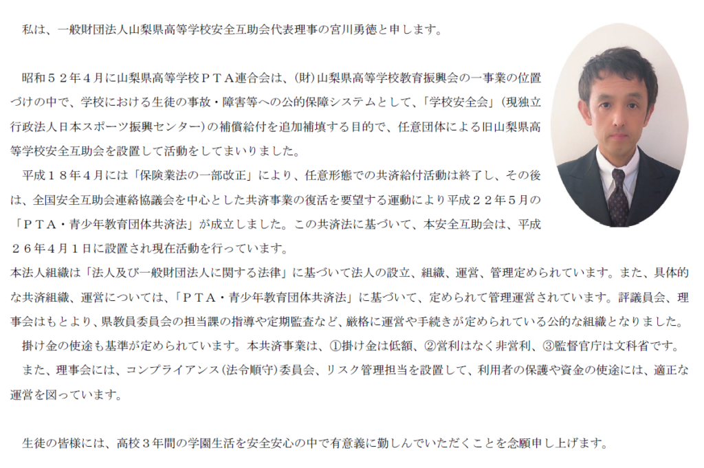理事長挨拶&事業概要 理事長挨拶 . 事業概要 共済事業の概要 (ダウンロード) ※全2ページ ページ送りボタンは下端にあります。 kyosai_gaiyo . 加入・請求・給付の手続き (ダウンロード) ※全3ページ ページ送りボタンは下端にあります。 kyosai_tetsuzuki